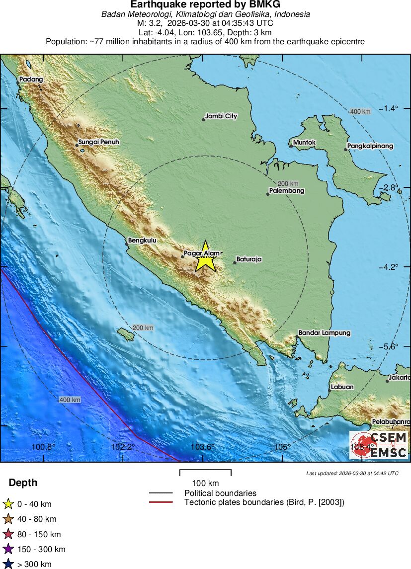 | 3.2 | 3 | 9213 | 22:35 | Linkki | Pieni maanjäristys- SOUTHERN SUMATRA, INDONESIA - Eilen |