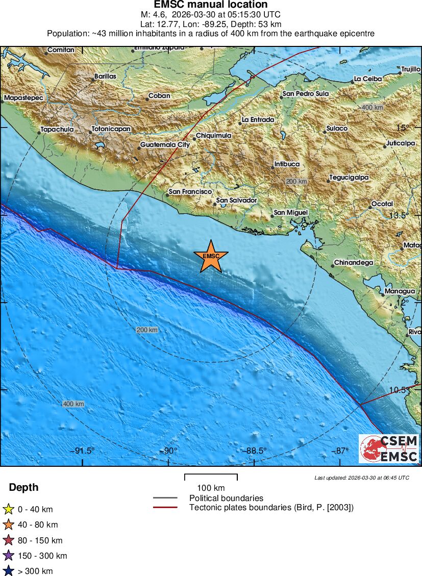 | 4.4 | 1 | 2346 | 23:15 | Linkki | Kevyt maanjäristys- OFF THE COAST OF EL SALVADOR - Eilen |