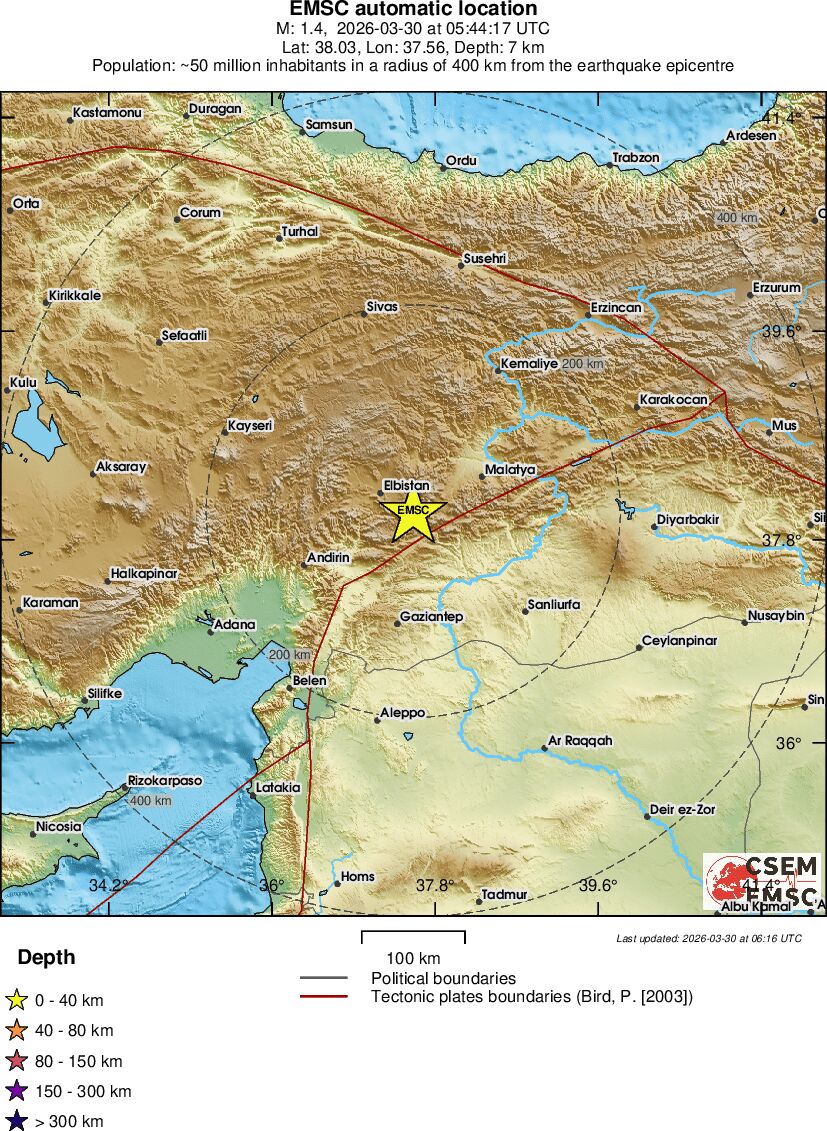 | 1.3 | 7 | 6259 | 23:44 | Linkki | Pieni maanjäristys- CENTRAL TURKEY - Eilen |