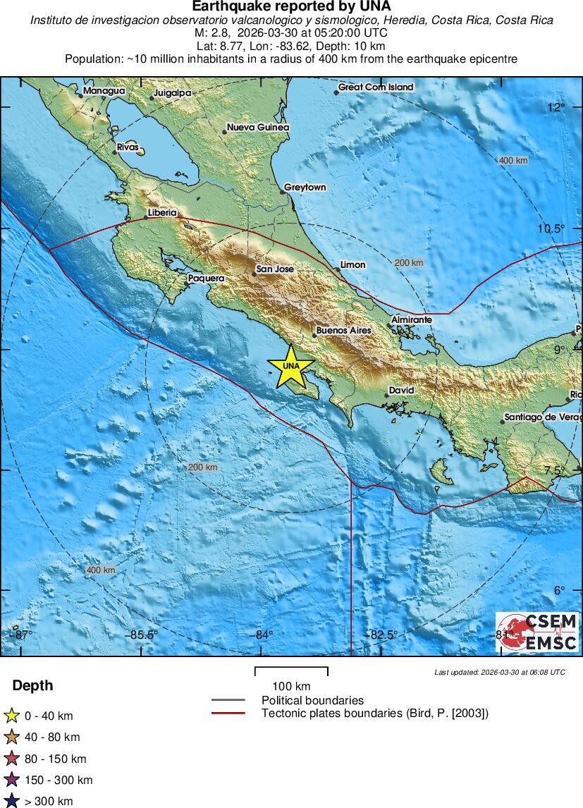 | 2.8 | 10 | 2718 | 23:20 | Linkki | Pieni maanjäristys- COSTA RICA - Eilen |