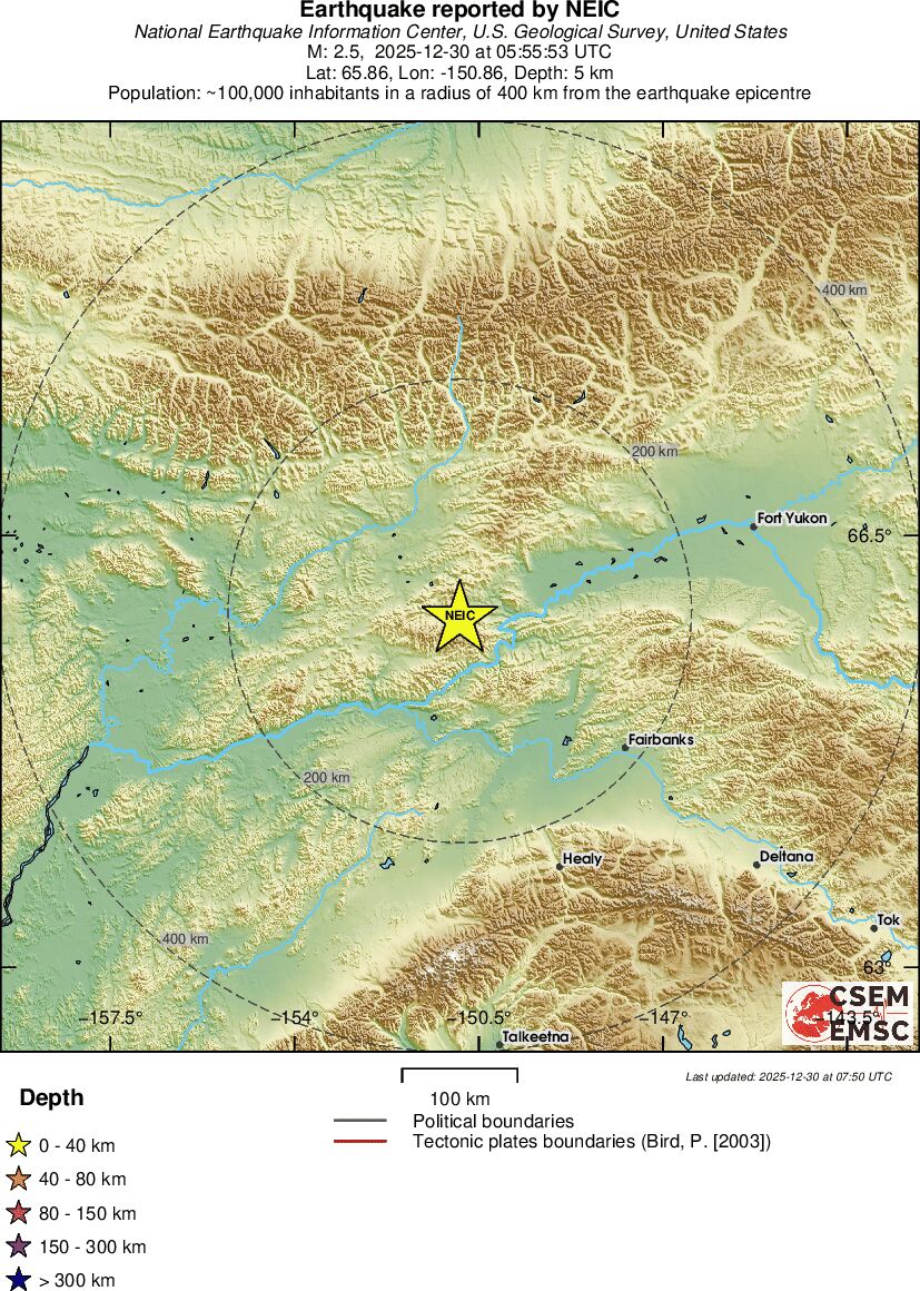 | 2.5 | 5 | 2313 | 22:55 | Enllaç | Terratrèmol menor- NORTHERN ALASKA - Ahir |