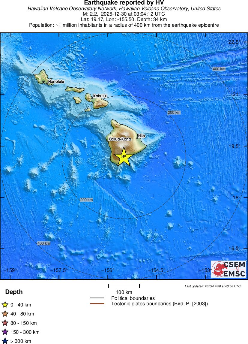 | 2.2 | 33.9 | 3441 | 20:04 | Link | Minor Earthquake- ISLAND OF HAWAII, HAWAII - Today |