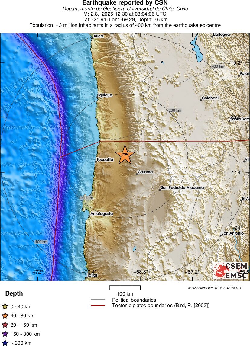 | 2.8 | 75.7 | 5049 | 20:04 | Link | Minor Earthquake- ANTOFAGASTA, CHILE - Today |