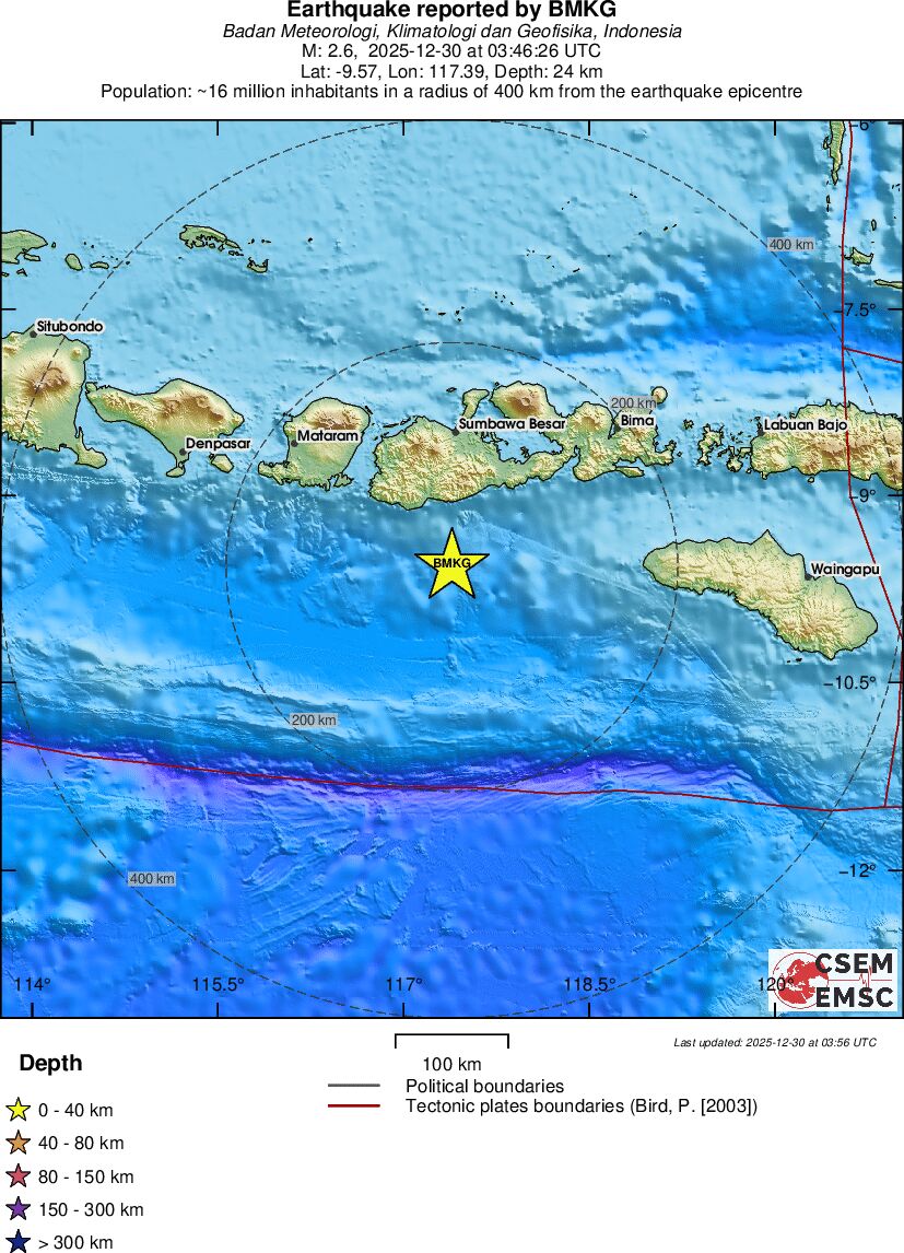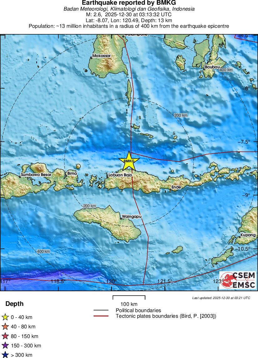 | 2.6 | 24 | 9025 | 20:46 | Link | Minor Earthquake- SUMBAWA REGION, INDONESIA - Today |