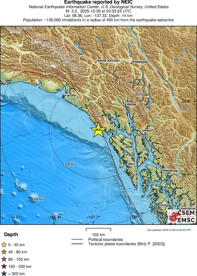 | 3.2 | 14 | 1735 | 20:33 | Link | Minor Earthquake- SOUTHEASTERN ALASKA - Today |