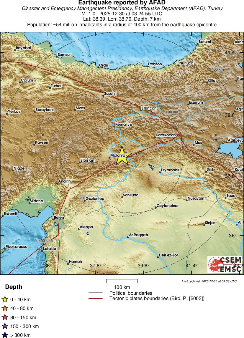 | 0.9 | 8.6 | 6274 | 20:03 | Link | Minor Earthquake- EASTERN TURKEY - Today |