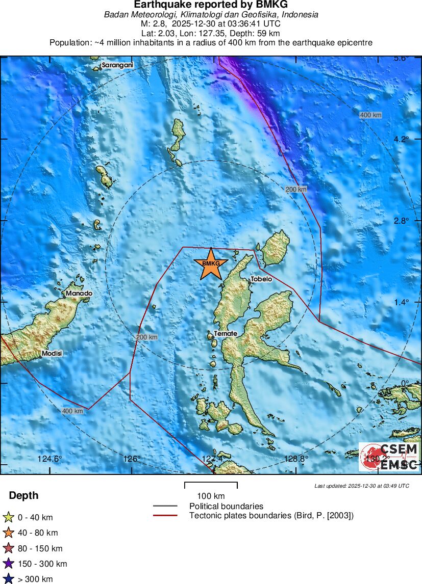 | 2.8 | 59 | 7972 | 20:36 | Link | Minor Earthquake- MOLUCCA SEA - Today |