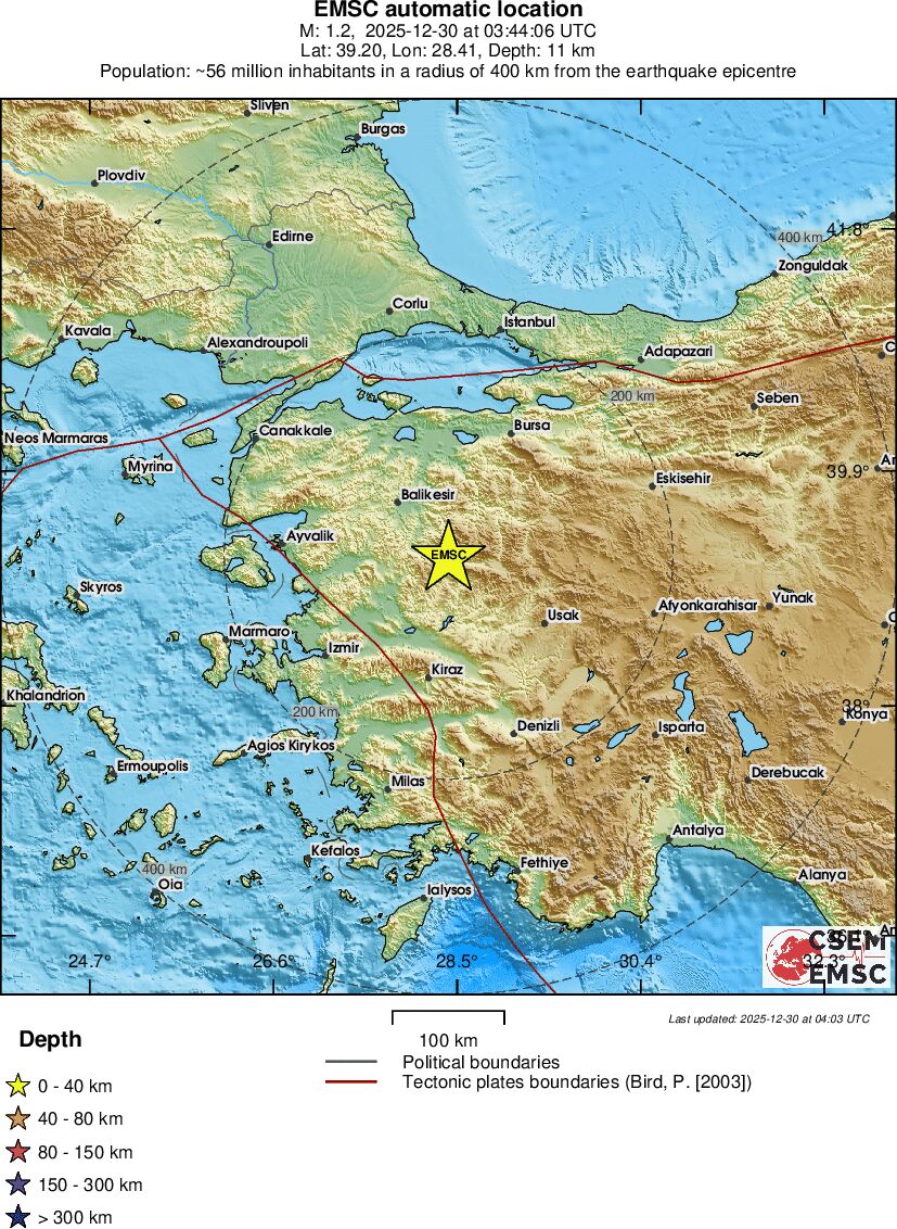 | 1.4 | 15.7 | 5961 | 22:25 | Link | Minor Earthquake- WESTERN TURKEY - Today |