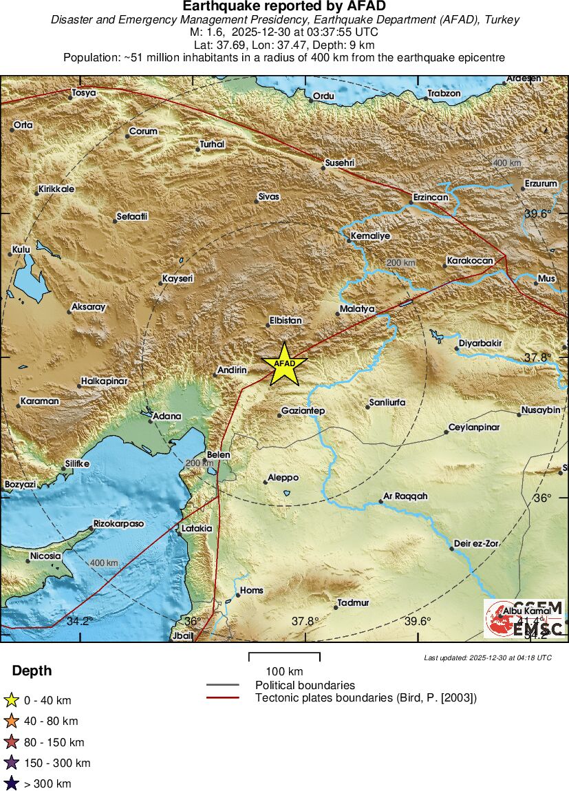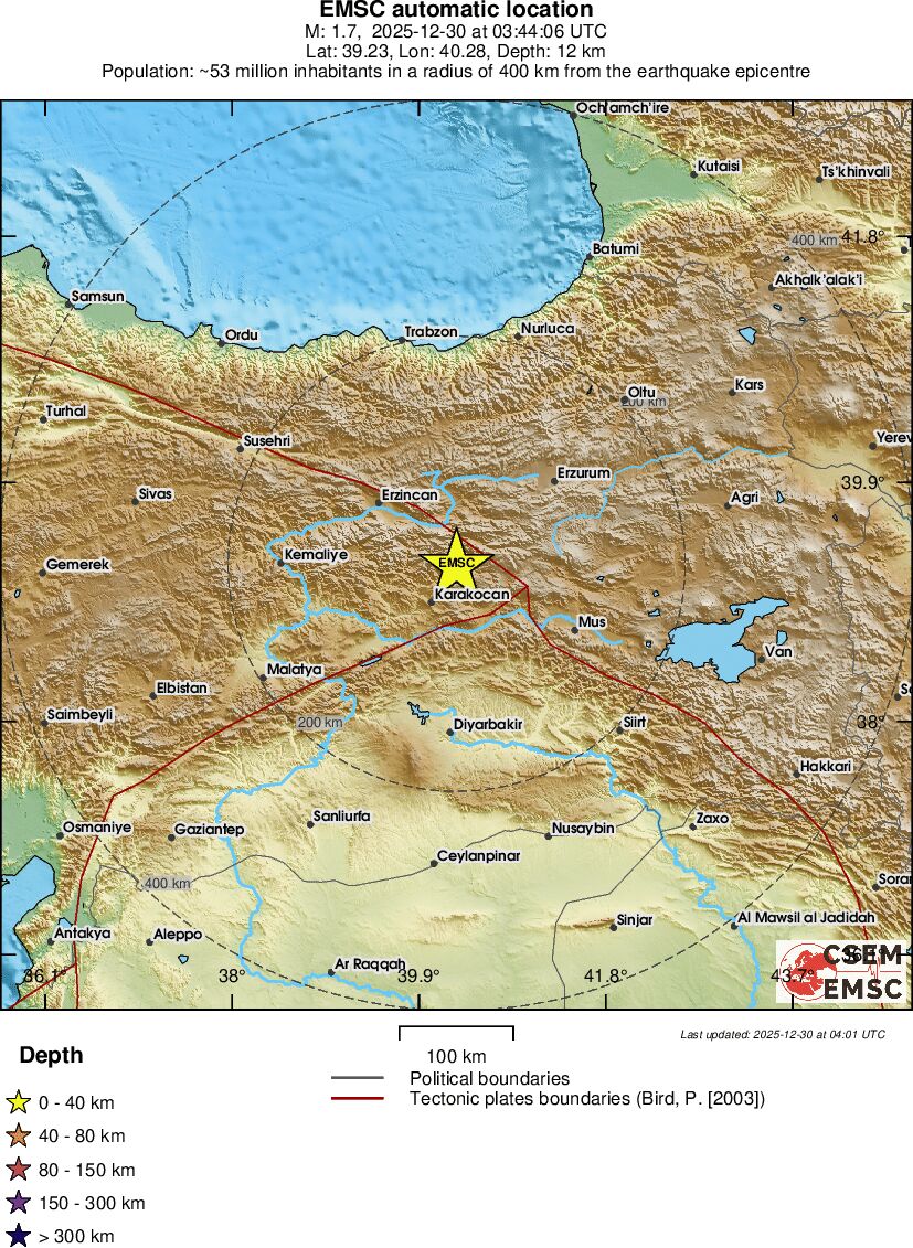 | 1.7 | 12 | 6249 | 20:44 | Link | Minor Earthquake- EASTERN TURKEY - Today |
