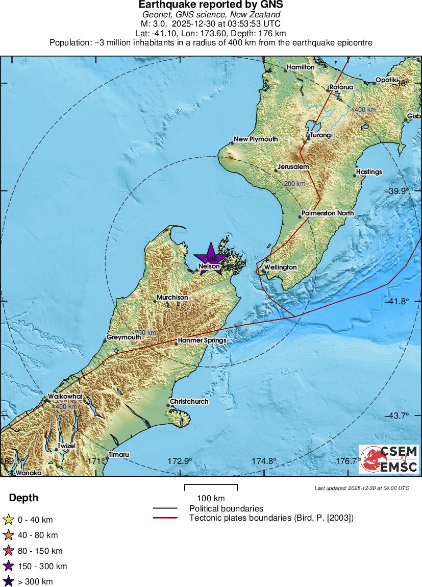 | 3 | 176.1 | 7811 | 20:53 | Link | Minor Earthquake- SOUTH ISLAND OF NEW ZEALAND - Today |