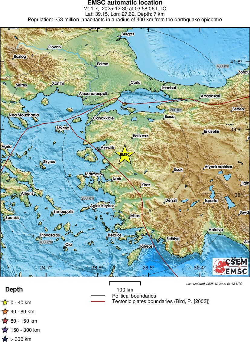 | 1.7 | 7 | 5925 | 20:58 | Link | Minor Earthquake- WESTERN TURKEY - Today |