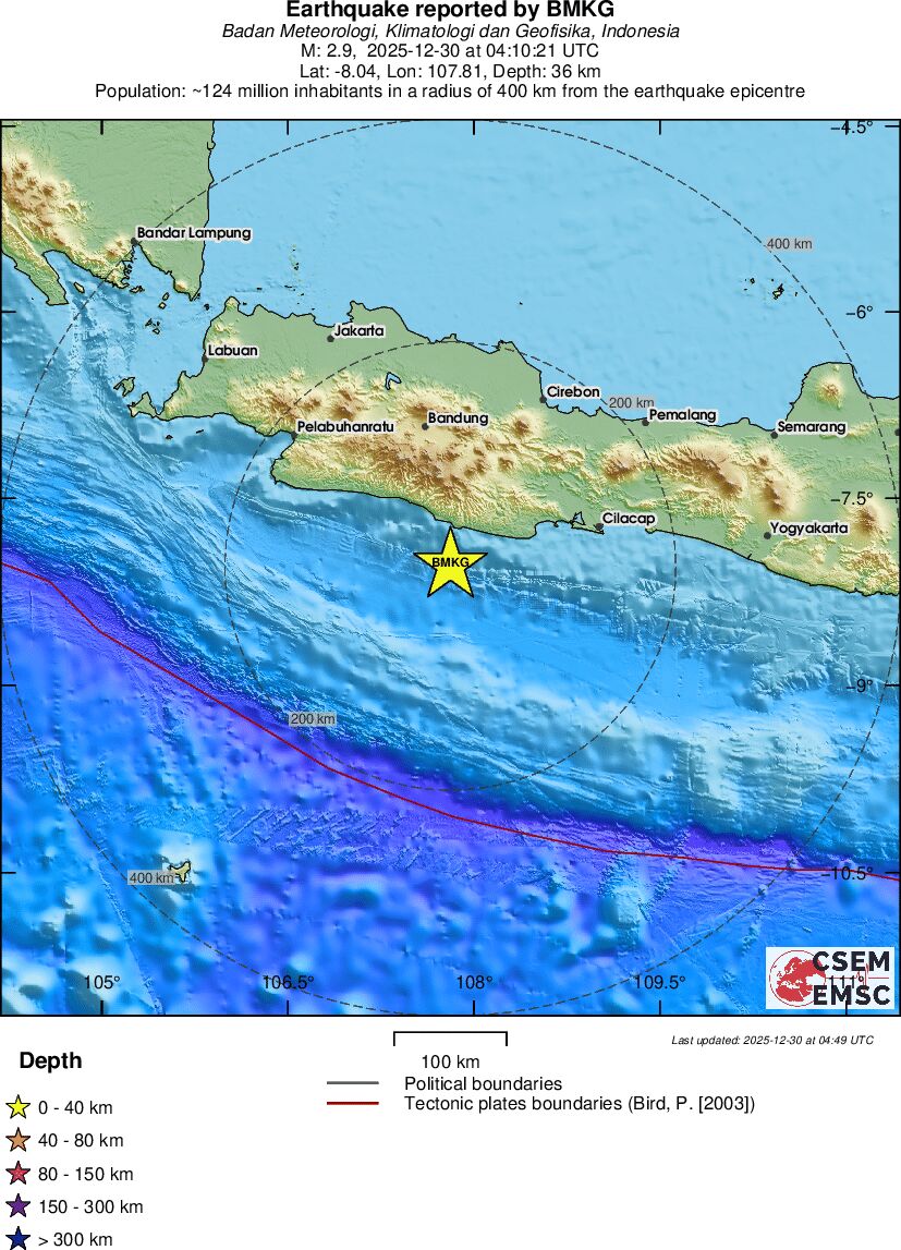 | 2.9 | 36 | 9315 | 21:10 | Link | Minor Earthquake- JAVA, INDONESIA - Today |