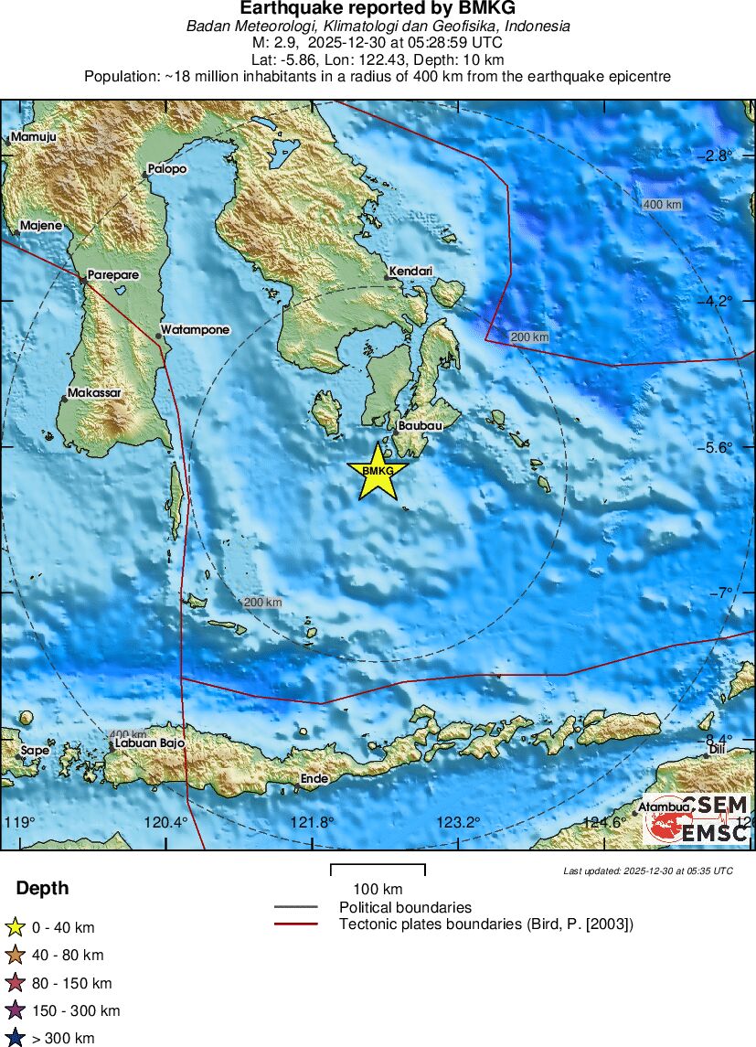 | 2.9 | 10 | 8610 | 22:28 | Link | Minor Earthquake- SULAWESI, INDONESIA - Today |