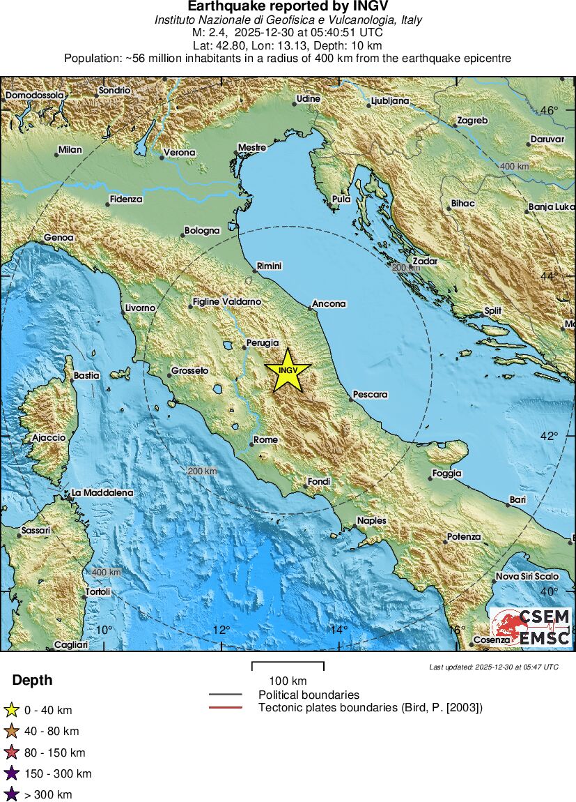 | 2.4 | 9.5 | 5268 | 22:40 | Link | Minor Earthquake- CENTRAL ITALY - Today |