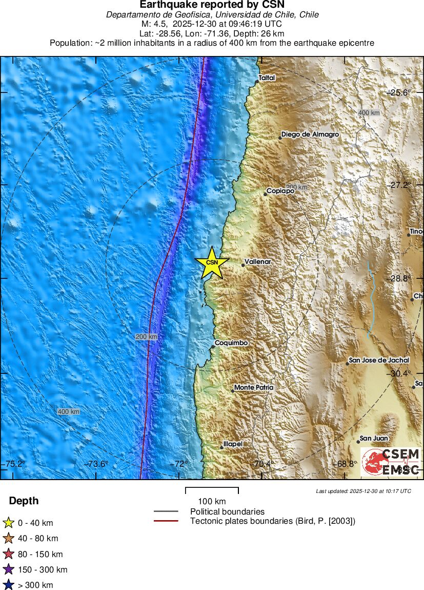 | 2.9 | 137.5 | 5037 | 01:17 | Länk | Mindre jordbävning- ANTOFAGASTA, CHILE - I dag |