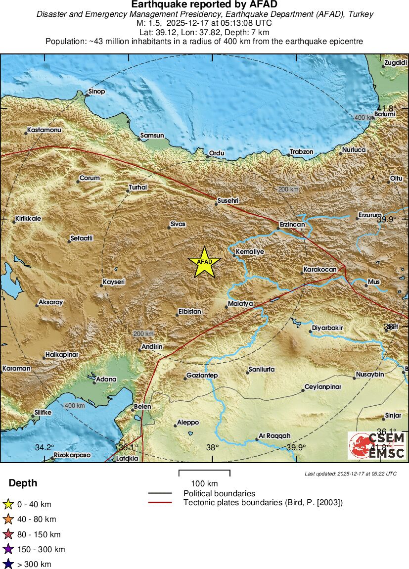 | 1.5 | 7 | 6198 | 22:13 | Link | Minor Earthquake- CENTRAL TURKEY - Today |