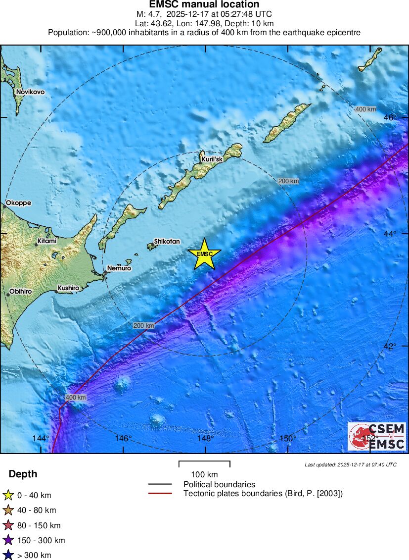 | 4.7 | 10 | 4949 | 22:27 | Link | Light Earthquake- KURIL ISLANDS - Today |