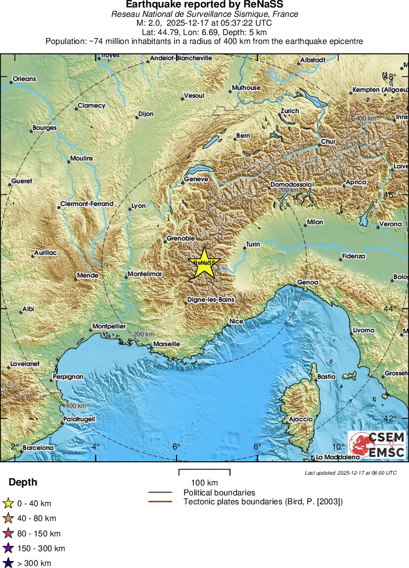 | 2 | 5 | 4949 | 22:37 | Link | Minor Earthquake- FRANCE - Today |