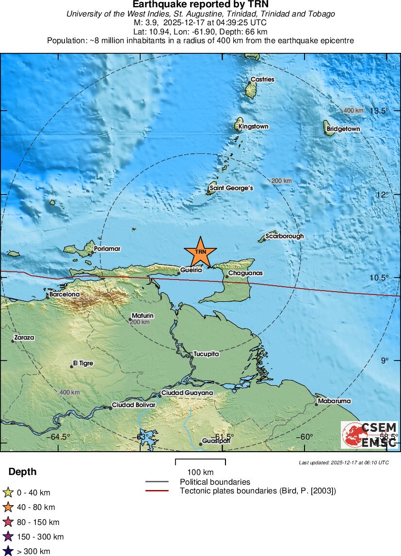 | 3.9 | 66.4 | 3368 | 21:39 | Link | Minor Earthquake- OFFSHORE SUCRE, VENEZUELA - Today |